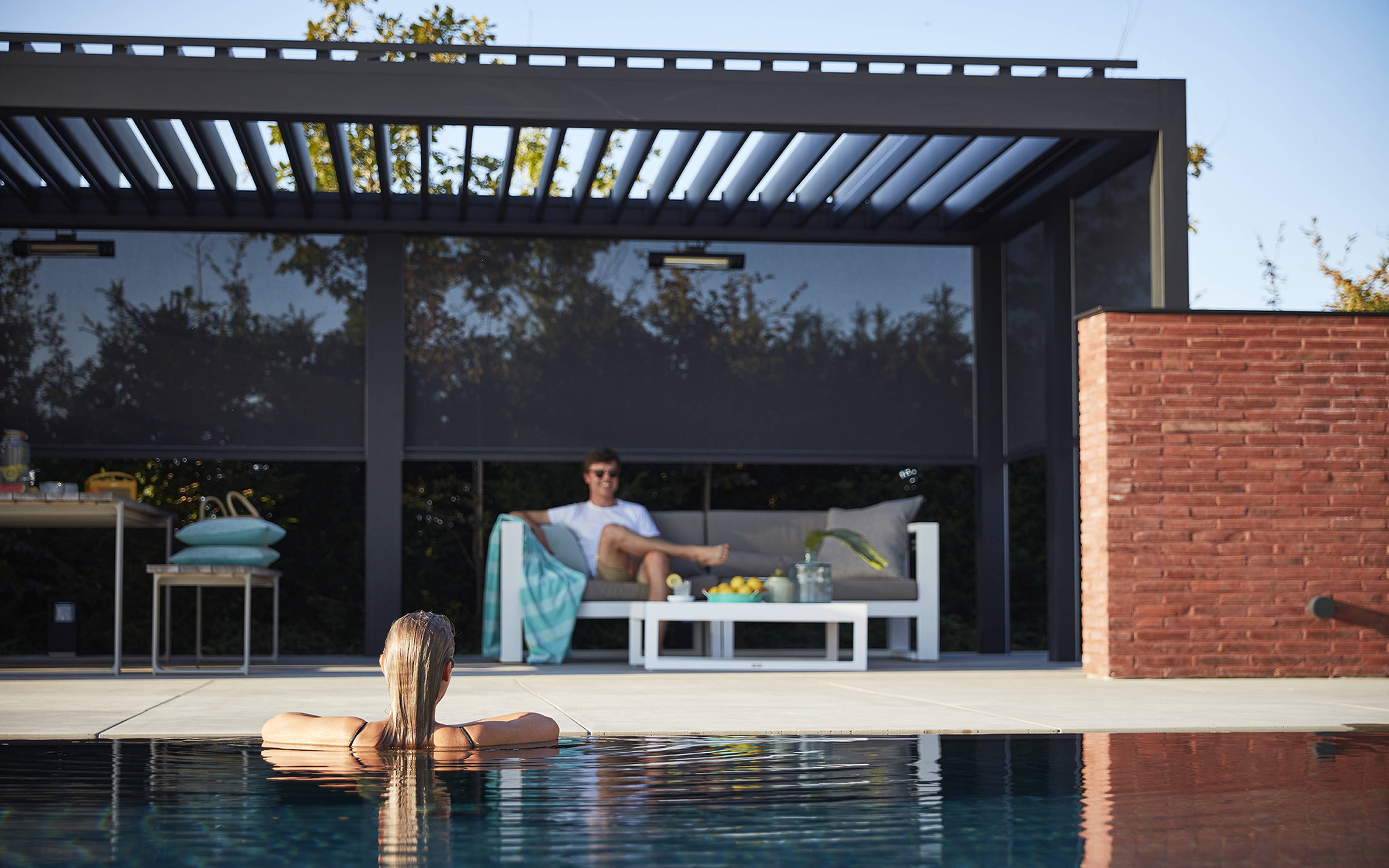 ‘There’s nothing more annoying than having to move the entire table inside in the middle of a dinner party. Thanks to the patio cover with louvred roof, we can stay right where we are, even when it rains. We can also use the extra living space to relax or have a drink. Sometimes, we play a game of Rummikub or read a book in peace and quiet.’