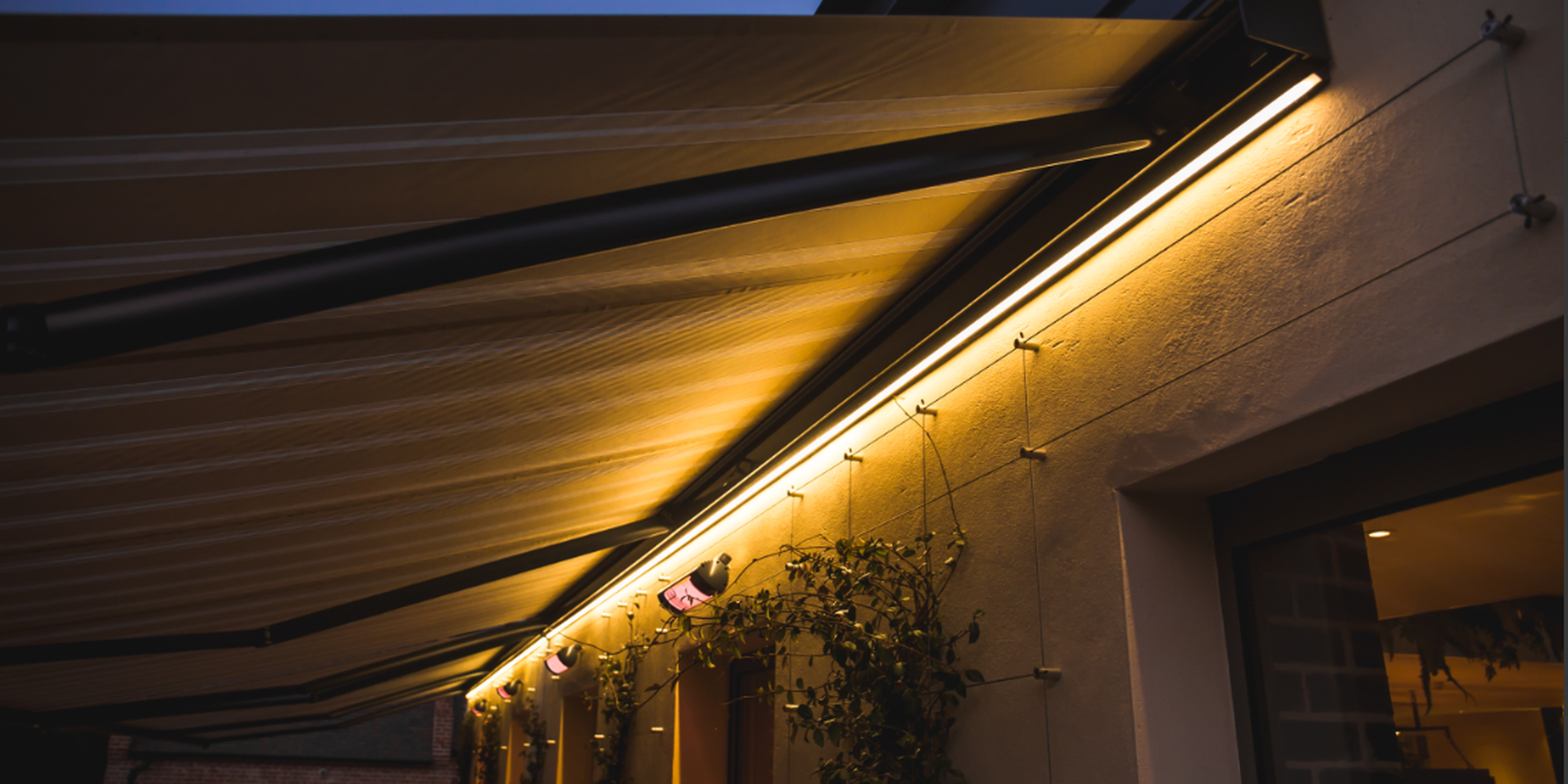 For awnings, there are several lighting options as well: a LED strip under the cassette or in the entire arm, a spotlight in the elbow, or LED in the awning box. The possibilities also depend on the type of awning. We recommend choosing both atmospheric and functional lighting so that there is a suitable light for every occasion. Extra tip: a LED strip under the cassette of an awning can also be used when the awning is closed. This way, you also have ideal terrace lighting.