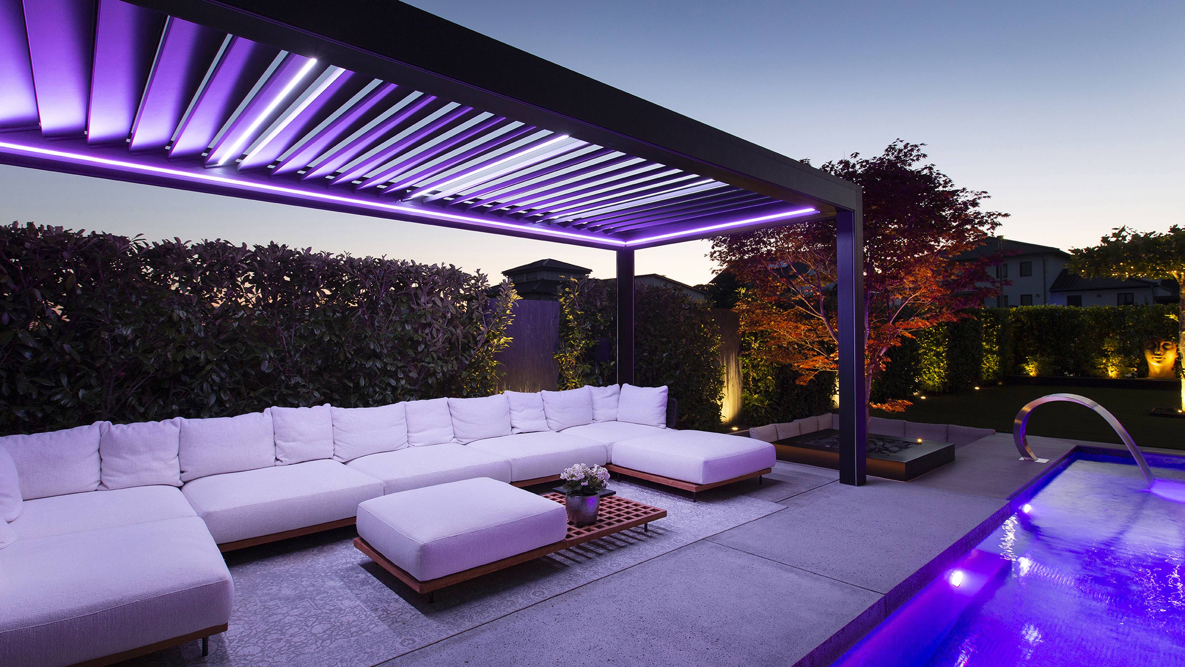 Whether it’s spring, summer, fall, or winter — we want to enjoy our backyard all year round. Making the most of your outdoor space and relaxing outside after sunset is even more enjoyable with the right lighting. With these three tips, you can create the perfect atmosphere under your pergola or awning and make the most of your outdoor area well into the evening, no matter the season.