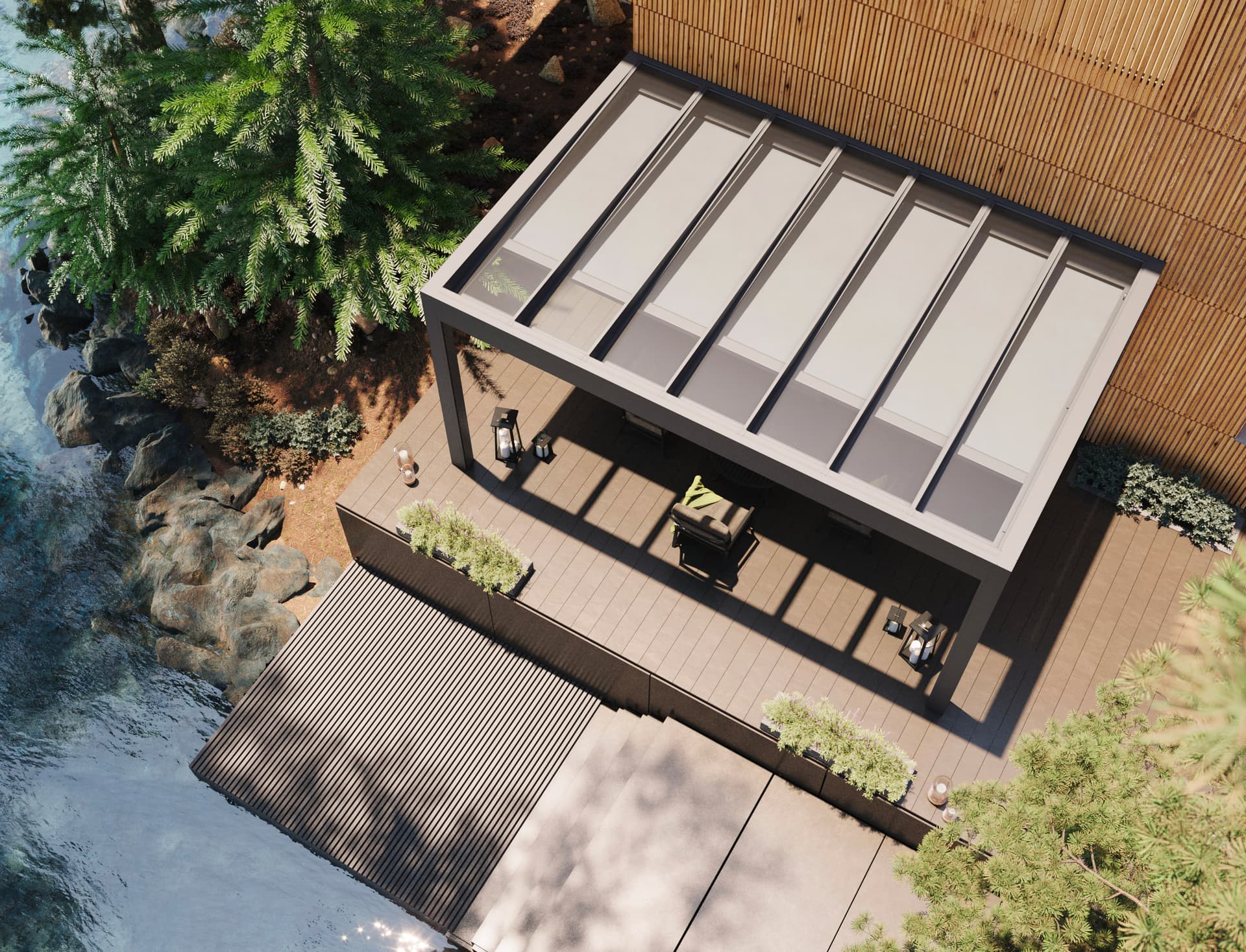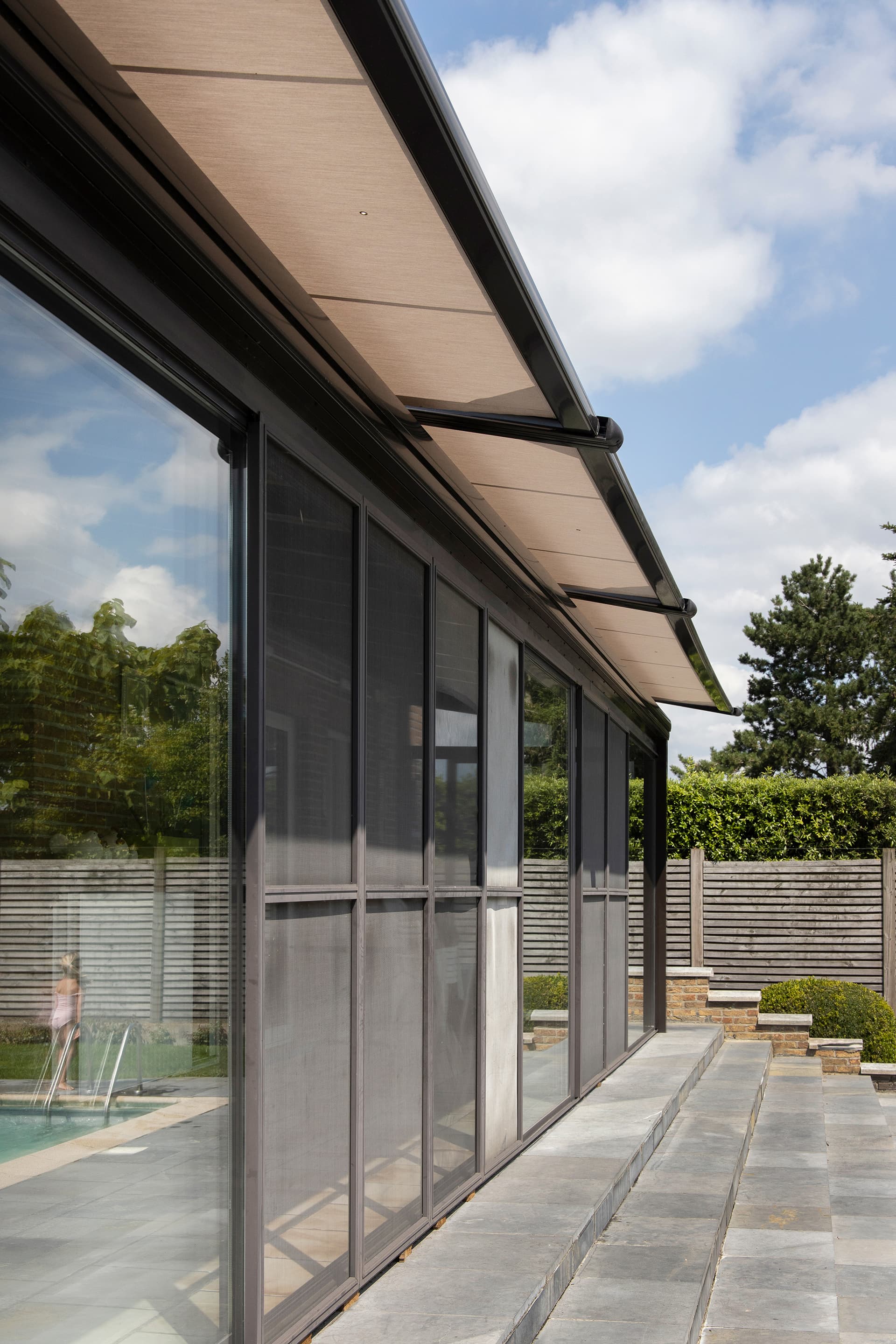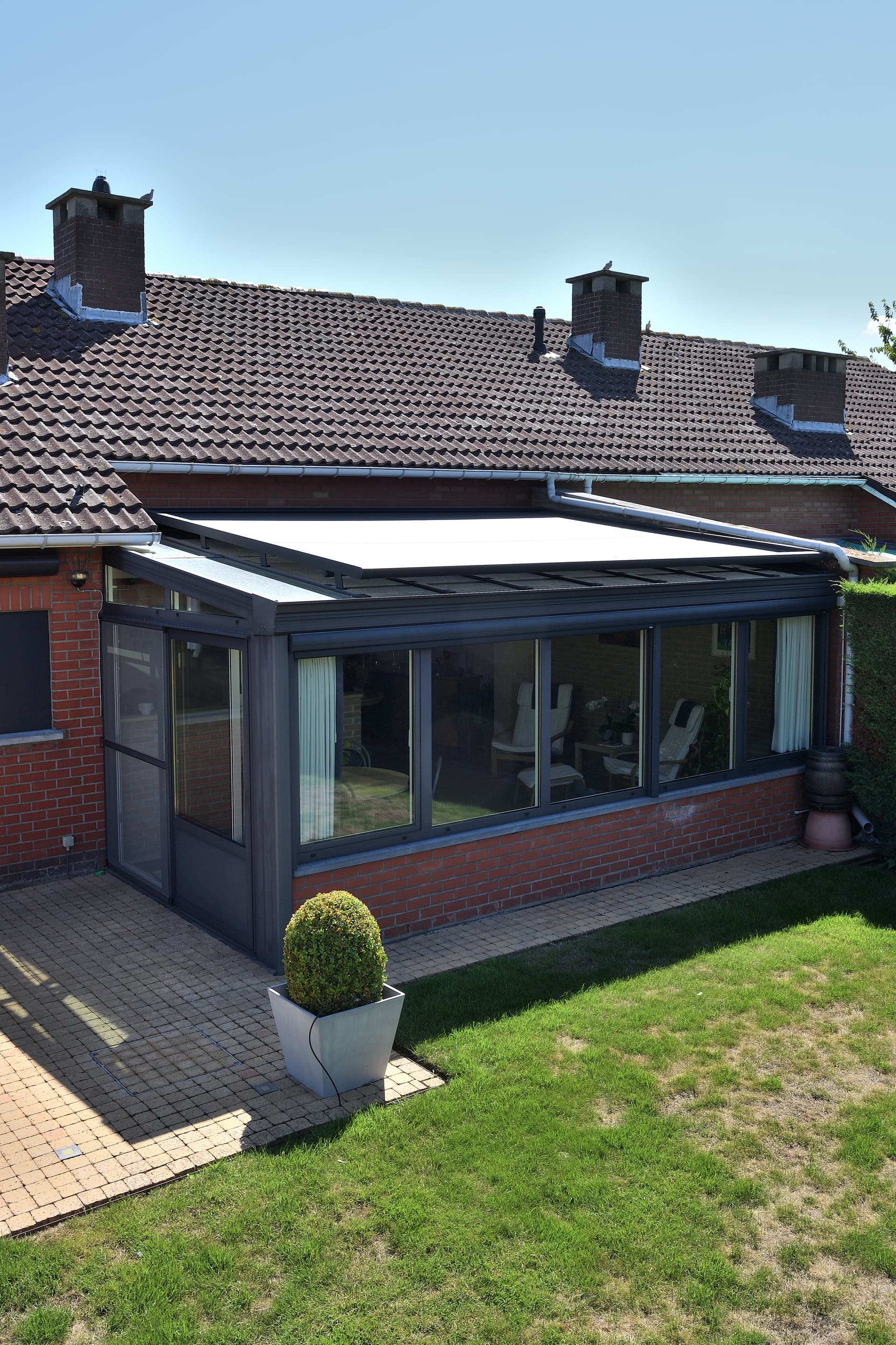 Nuestros toldos de veranda son tan versátiles como tu veranda. ¿Tienes una veranda rectangular o un techo de cristal con una forma irregular o esquinas redondeadas? En Brustor, encontrarás sin duda exactamente el tipo de protección solar que buscas, con el color y la calidad que desees. ¿Prefieres protección solar en el interior de la veranda? Por supuesto, eso también es posible.