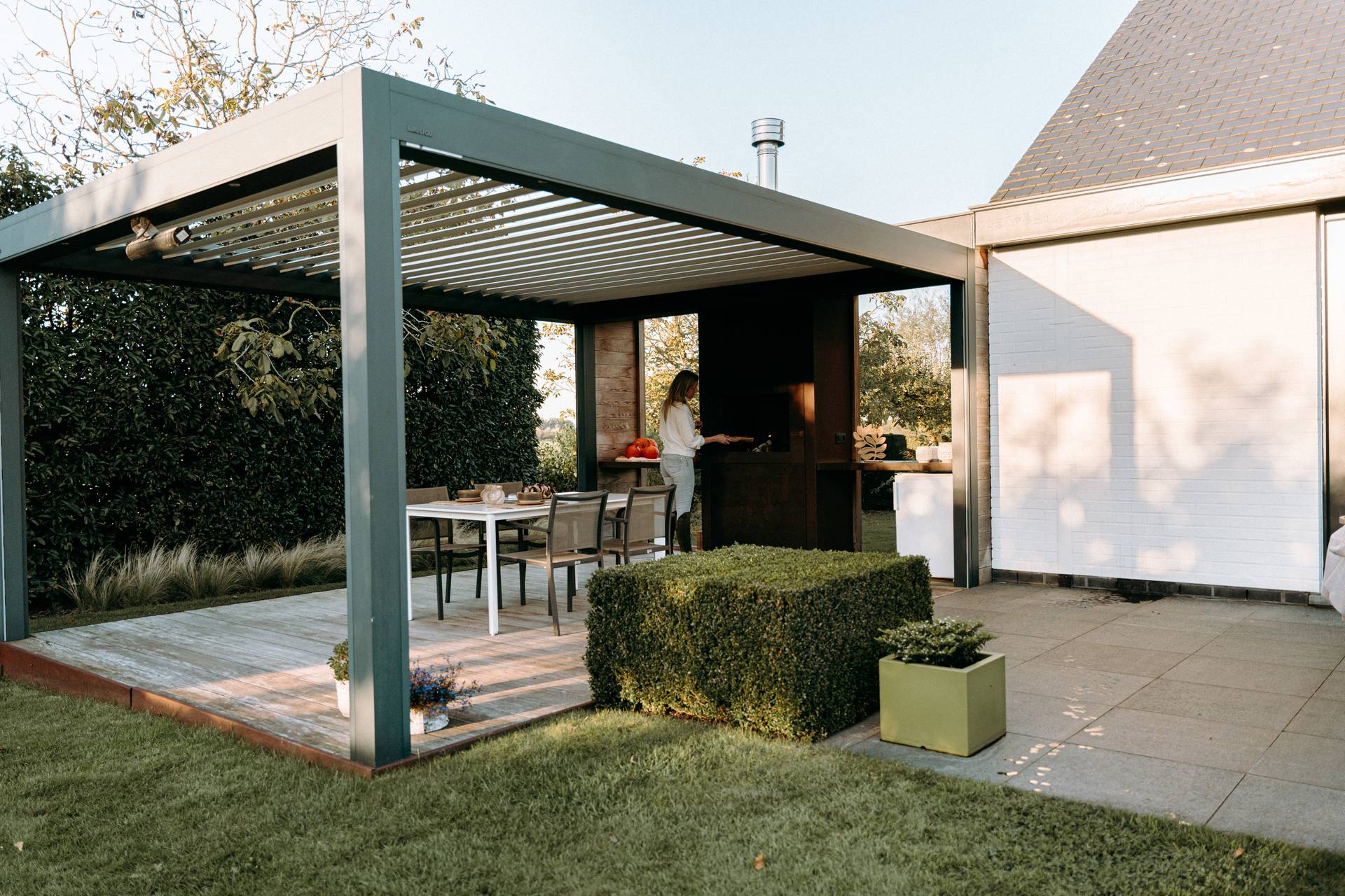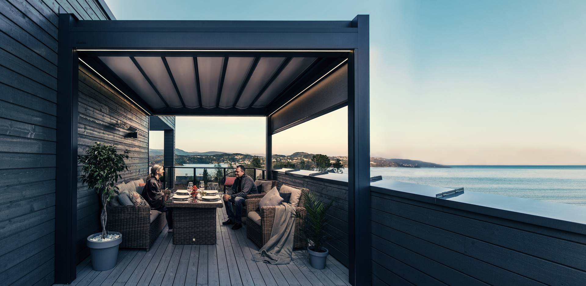 Nous vous recommandons de fermer votre protection solaire pendant la nuit afin qu’elle soit bien à l’abri dans son coffre de protection plutôt qu’exposée aux éléments météorologiques. Nos pergolas sont conçues pour résister aux variations météorologiques afin de vous permettre de profiter plus longtemps de la vie au jardin. Chaque option ou fonction a sa propre finalité, qu’il s’agisse de protéger ou d’upgrader votre espace extérieur. Les stores vous protègent du vent, du soleil et de la pluie, l’évacuation d’eau intégrée garde votre terrasse au sec et les lames à commande automatique s’adaptent à vos besoins et aux conditions météo.