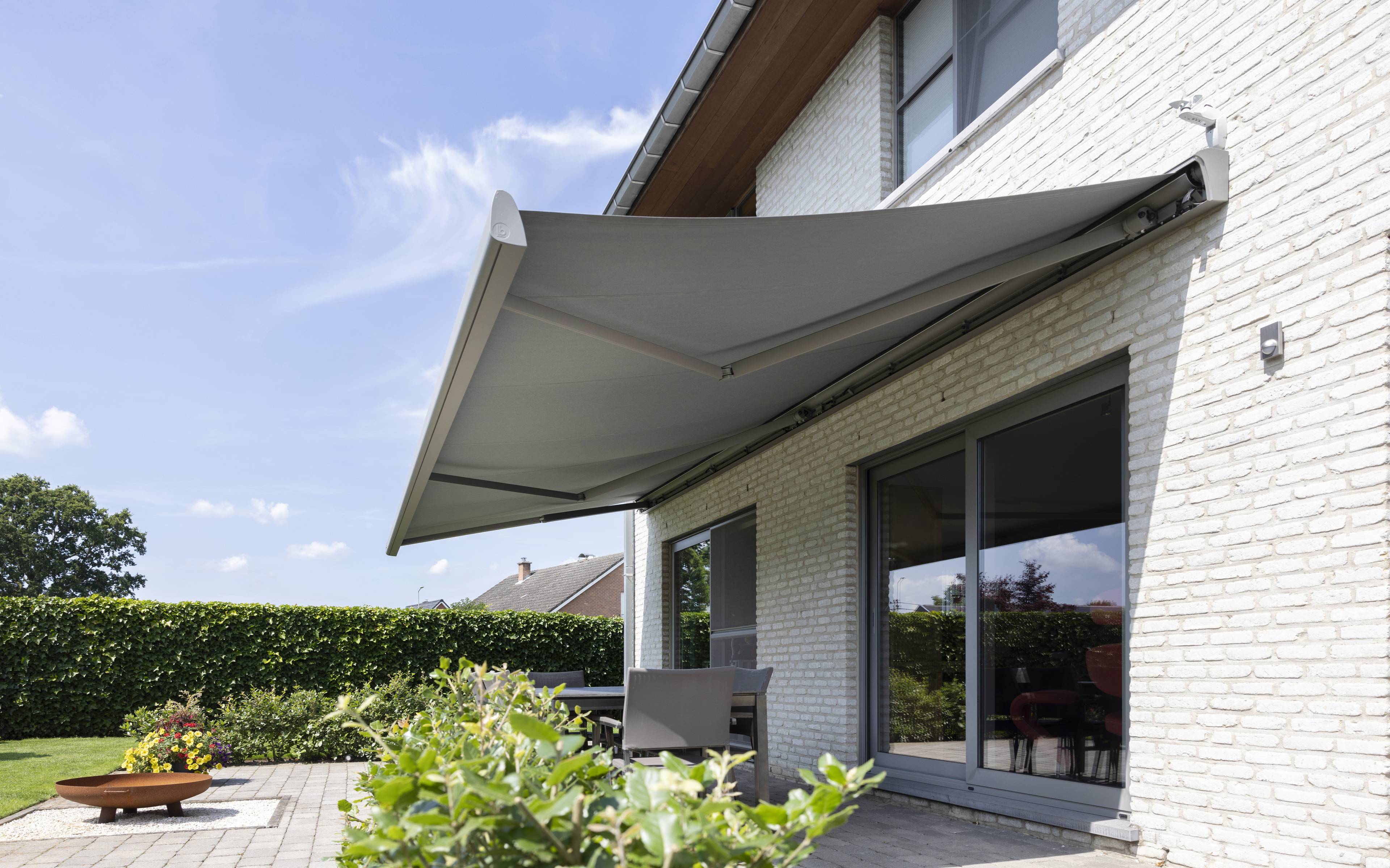 Terrasoverkappingen met een geautomatiseerd lamellendak bestaan uit lamellen die je naar wens kan kantelen. Veel zon, volledige schaduw of iets daartussen? It’s up to you. De B600 S overkapping heeft kantelbare lamellen die ook bijna volledig kunnen openschuiven.