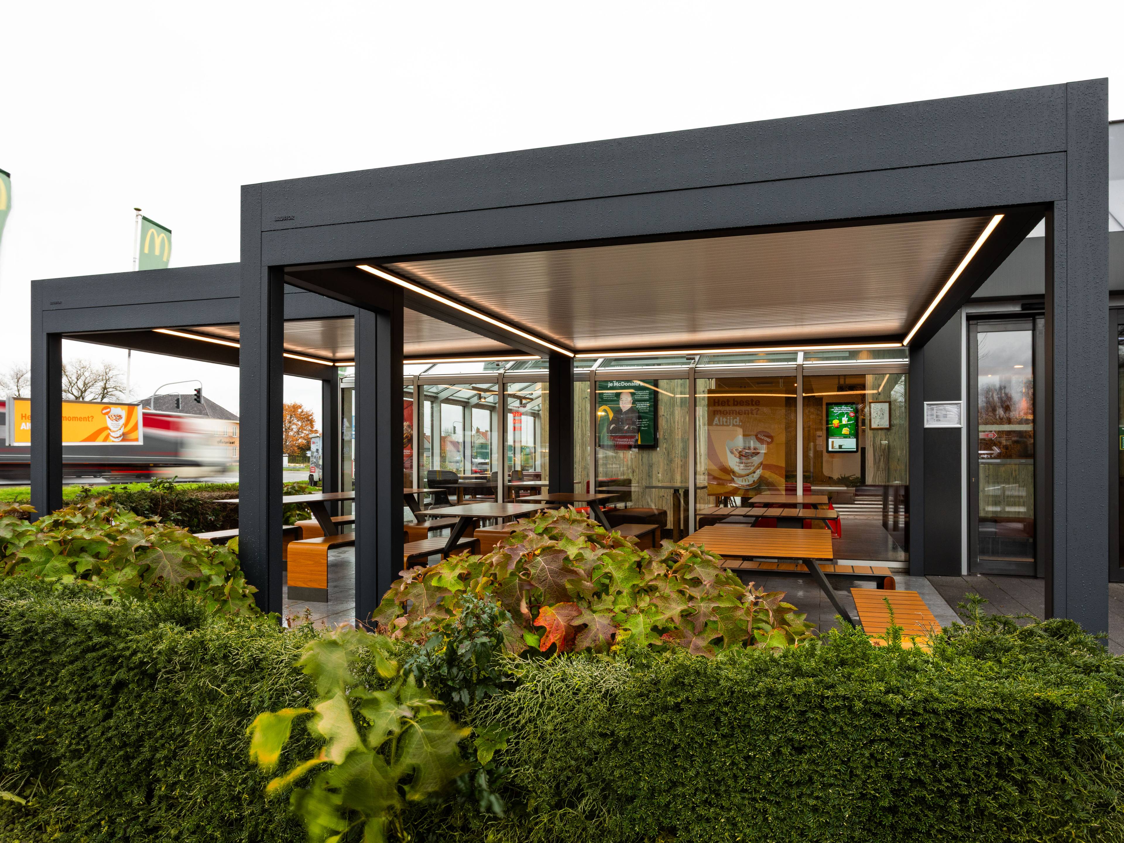De Brustor B910 pergola met vast dak is ook een uitstekende oplossing voor horecazaken zoals restaurants, cafés en hotels. De solide constructie en het vaste dak creëren een weerbestendige buitenruimte die het hele jaar door gebruikt kan worden — ideaal om het terrasrendement en het comfort van gasten te maximaliseren.